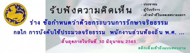 แบบสอบถามรับฟังความคิดเห็นและ QR-Code ร่างข้อกำหนดว่าด้วยกระบวนการรักษาจริยธรรม กลไก การบังคับใช้ ประมวลจริยธรรมพนักงานส่วนท้องถิ่น พ.ศ. ...