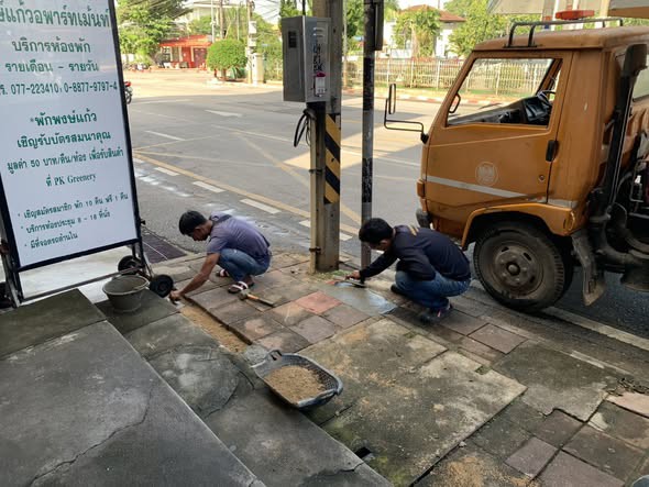 -ซ่อมทางเท้าหน้าร้านศรแดง