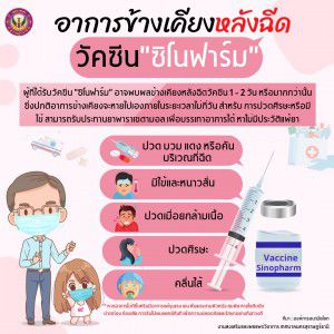 Written by กองยุทธศาสตร์และงบประมาณ ฝ่ายบริการและเผยแพร่วิชาการ งานส่งเสริมและเผยแพร่วิชาการ on 30 September 2021. อาการข้างเคียงหลังฉีดวัคซีน "ซิโนฟาร์ม" COVID-19 Hits: 1910 Print Email