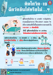 Written by กองยุทธศาสตร์และงบประมาณ ฝ่ายบริการและเผยแพร่วิชาการ งานส่งเสริมและเผยแพร่วิชาการ on 05 October 2021. ติดโควิดฉีดวัคซีนได้หรือไม่ COVID-19 Hits: 2313 Print Email
