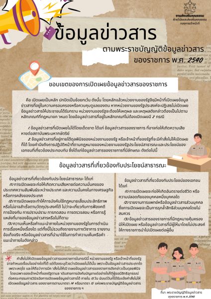 - การเผยแพร่ประชาสัมพันธ์ความรู้ด้านกฎหมาย เกี่ยวกับสาระสำคัญของพระราชบัญญัติข้อมูลข่าวสารของราชการ พ.ศ.๒๕๔๐