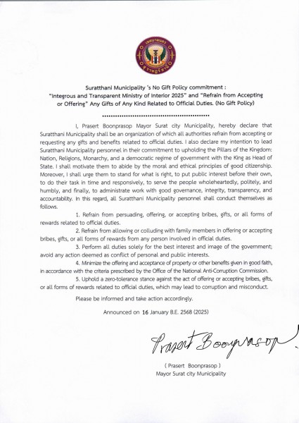 No Gift Policy งดรับ งดให้ของขวัญ 2568
