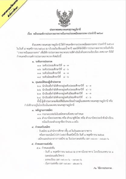 เทศบาลนครสุราษฎร์ธานี ขอเชิญชวนร่วมกิจกรรมการประกวดภาพวาดในหัวข้อ "วาดภาพวันลอยกระทง" ในงานประเพณีลอยกระทง ประจำปี 2568