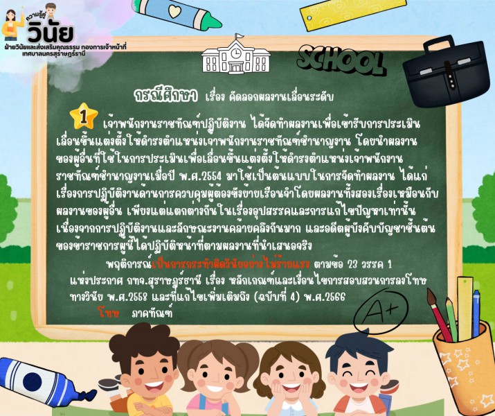 - กรณีศึกษา เรื่องคัดลอกผลงานเลื่อนระดับและการเล่นการพนันจนถูกจับกุม
