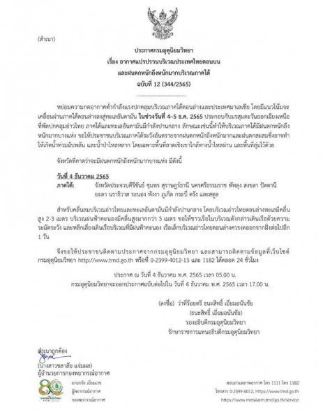 - #ประกาศจากกรมอุตุนิยมวิทยา ขอให้ประชาชนในบริเวณภาคใต้ระวังอันตรายจากฝนตกหนักถึงหนักมาก