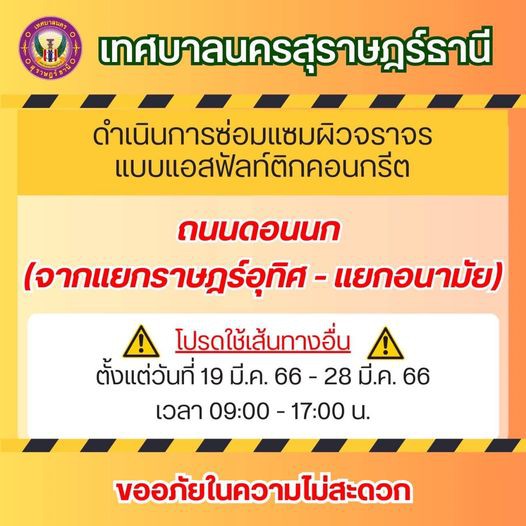 #เทศบาลนครสุราษฎร์ธานี ดำเนินการซ่อมแซมผิวจราจรแบบ แอสฟัลท์คอนกรีต ถนนดอนนก (จากแยกราษฎร์อุทิศ- แยกอนามัย)