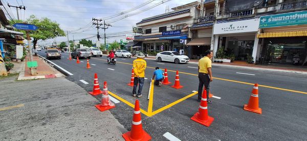 -ทาสีเครื่องหมายเหลืองทแยง บริเวณพ่อขุนทะเล ซอย 15/3