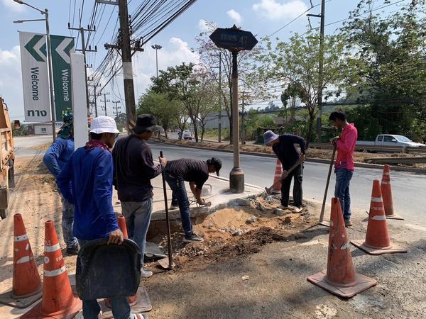 - ติดตั้งป้ายประชาสัมพันธ์การซ่อมผิวจราจร