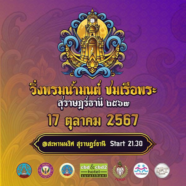 “วิ่งพรมน้ำมนต์ ชมเรือพระ สุราษฎร์ธานี ประจำปี 2567” Chak Phra Night Run 2024 เทศกาลงานวิ่งคืนวันออกพรรษา หนึ่งเดียวในโลก!! มาร่วมวิ่งสร้างบุญ เสริมสิริมงคล วิ่ง 1 วัน ได้ทำบุญมากกว่า 100 วัด
