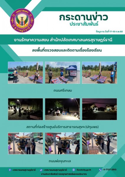 • กระดานข่าวประชาสัมพันธ์ เราทำงานทุกวันเพื่อพี่น้องประชาชน งานรักษาความสงบ สำนักปลัดเทศบาล
