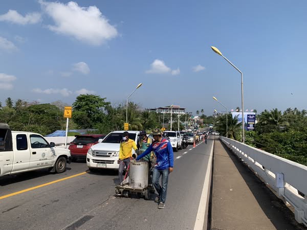 -ตีเส้นแบ่งช่องจราจรสะพานศรีตาปี