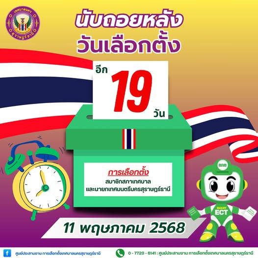 ศูนย์ประสานงานการเลือกตั้งเทศบาลนครสุราษฎร์ธานี โทร.0 7720 6141