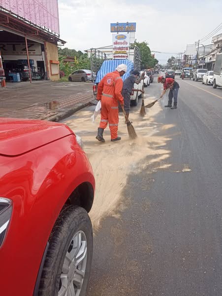 เทศบาลนครสุราษฎร์ธานี โดยเจ้าหน้าที่ฝ่ายป้องกันและบรรเทาสาธารณภัย สำนักปลัดเทศบาล ลงพื้นที่บริเวณสี่แยกน้ำค้าง ถนนอำเภอ หลังได้รับแจ้งเหตุมีคราบน้ำมันรั่วไหลบนพื้นผิวการจราจร ซึ่งเจ้าหน้าที่ได้แก้ไขสถานการณ์ นำผงดูดซับน้ำมันโปรยลงบนพื้นที่ดังกล่าว ระยะทางประมาณ 20 เมตร เพื่อความปลอดภัยและป้องกันอุบัติเหตุที่อาจเกิดขึ้นกับประชาชนที่ใช้เส้นทางในการสัญจร เมื่อช่วงเย็นวันที่ 2 สิงหาคม 2568