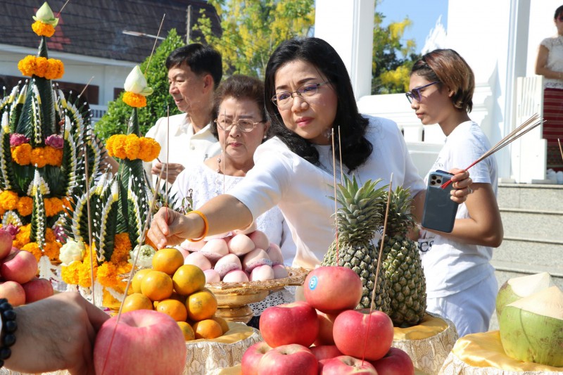 โดยมีพระครูปริยัติคุณาวุธ รองเจ้าคณะจังหวัดสุราษฎร์ธานี (เจ้าอาวาสวัดกลางใหม่) เป็นประธานฝ่ายสงฆ์ มีคุณสุนิสา วงศ์เจริญ เป็นประธานจุดธูป-เทียนในพิธี เพื่อเสริมความเป็นสิริมงคล ทั้งนี้ยังมีหน่วยงานภาครัฐและเอกชน คณะครู/นักเรียน และประชาชนเข้าร่วม