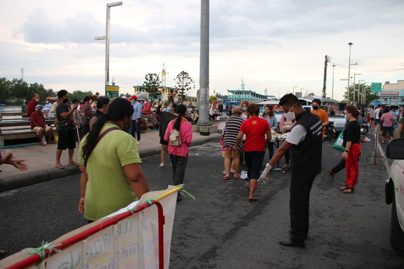 ให้กับพี่น้องประชาชน ณ บริเวณหน้าแผงนู๋ใหม่แตงโม ตลาดโพหวาย และศิษย์เก่ามานิตานุเคราะห์ แจกข้าวสารอาหารแห้ง ณ บริเวณหน้าวัดหลวงพ่อพัฒน์ ข้าวมันไก่โกบู๊ จำนวน 250 ห่อ และร้านก๋วยเตี๋ยวแม่ขาว จำนวน 250 ห่อ ณ ตลาดท่าเรือเกาะ โดยเทศบาลนครสุราษฎร์ธานี สนับสนุนเจ้าหน้าที่สำนักงานสาธารณสุขและสิ่งแวดล้อม,งานประชาสัมพันธ์ เทศบาลนครสุราษฎร์ธานี อำนวยควา มสะดวกให้กับผู้แจก เพื่อจัดระเบียบให้แก่ประชาชนที่จะมารับของบริจาคในสถานการณ์การระบาดของโรคโควิด-19 ยืนเว้นระยะห่าง 1-2 เมตร ปลอดภัยทั้งผู้ให้และผู้รับ ให้ถูกสุขลักษณะตามมาตรการป้องกันการแพร่ระบาด โรคโควิด–19 เมื่อวันที่ 19 เมษายน 2563