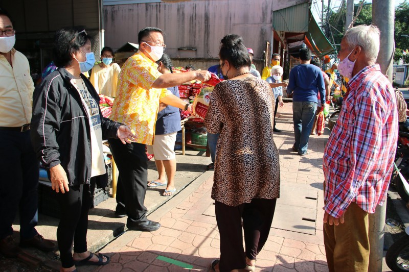 ลงพื้นที่อำนวยความสะดวกให้กับผู้แจกมอบอาหารให้แก่ประชาชนที่จะมารับของบริจาคในสถานการณ์การระบาดของโรคโควิด-19 โดยมีเจ้าหน้าที่สำนักงานสาธารณสุขและสิ่งแวดล้อม ร่วมจัดระเบียบให้แก่ประชาชน เพื่อเป็นการอำนวยความสะดวก จึงขอความร่วมมือให้ผู้ที่มายืนต่อแถว เว้นระยะห่าง 1 - 2 เมตร ปลอดภัยทั้งผู้ให้และผู้รับ ให้ถูกสุขลักษณะตามมาตรการป้องกันการแพร่ระบาดโรคโควิด – 19