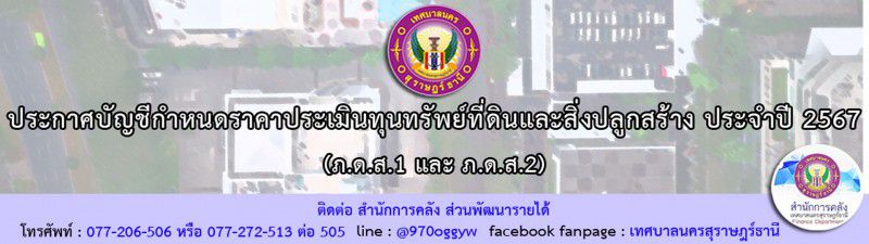 ประกาศบัญชีกำหนด ราคาประเมินทุนทรัพย์ที่ดินและสิ่งปลูกสร้าง ประจำปี 2567 (ภ.ด.ส.1 และ ภ.ด.ส.2)