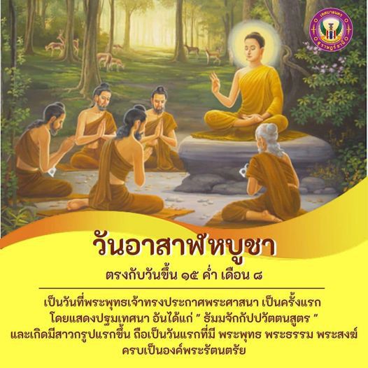 "วันอาสาฬหบูชา" ตรงกับวันเสาร์ที่ ๒๔ กรกฎาคม ๒๕๖๔ (ขึ้น ๑๕ คํ่า เดือน ๘๘)