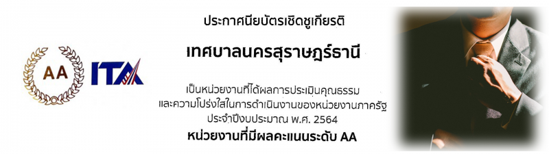 ประกาศนียบัตรเชิดชูเกียรติ เทศบาลนครสุราษฎร์ธานี เป็นหน่วยงานได้รับผลการประเมินคุณธรรมและความโปร่งใสในการดำเนินงานของหน่วยงานภาครัฐ ประจำปีงบประมาณ พ.ศ. 2564