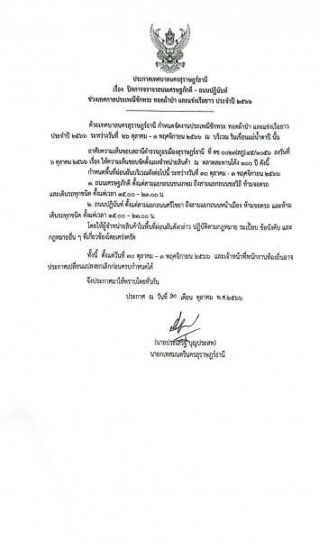 เรื่อง ปิดการจราจรถนนเศรษฐภักดี - ถนนปฏินันท์ ช่วงเทศกาลประเพณีชักพระ ทอดผ้าป่า และแข่งเรือยาว ประจำปี ๒๕๖๖