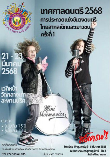 ขอเชิญน้องๆ ที่มีความสามารถด้านดนตรี เข้าร่วมการประกวดแข่งขันวงดนตรีไทยสากลเด็กและเยาวชน ครั้งที่ 1