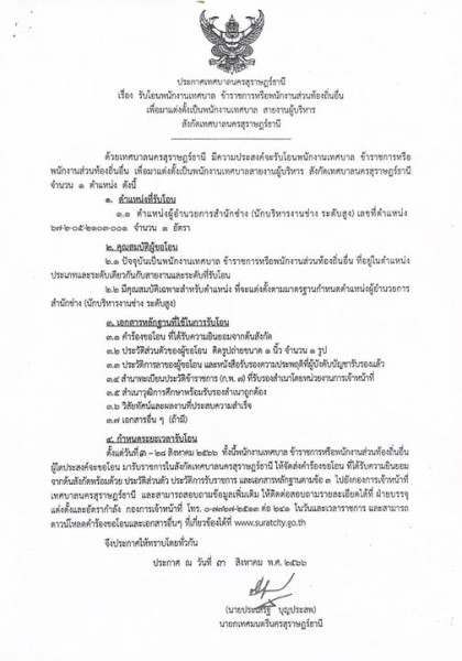 เพื่อมาแต่งตั้งเป็นพนักงานเทศบาล สายงานผู้บริหาร สังกัดเทศบาลนครสุราษฎร์ธานี
