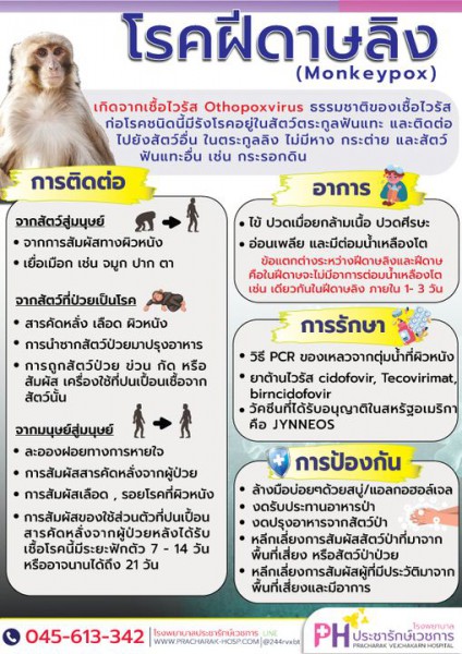 1.หากไม่ได้ทำการรักษาโรคฝีดาษลิง ในผู้ป่วยส่วนใหญ่ ธรรมชาติของโรคจะหายได้เองภายใน 2 – 4 สัปดาห์