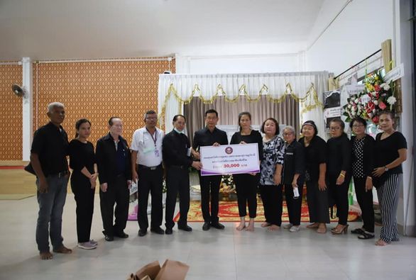 นายกแป๊ะ เป็นตัวแทนมอบเงิน 30,000 บาท แก่สมาชิกกองทุนสวัสดิการชุมชนที่เสียชีวิต