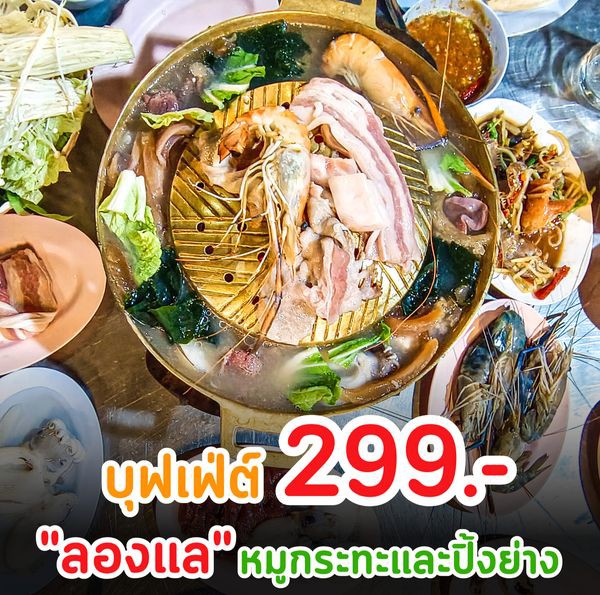 หยิบกุญแจแล้วสตาร์ทรถไปกินด่วนน ที่นี่เริ่มต้นหัวละ 299.- บาทเท่านั้น หากต้องการเตาปิ้งย่างเพิ่ม เพียงเตาละ 99.- บาทเองงง มีทั้งของสด อาหารทะเล ของทอด ยำ ของหวานให้เลือกสรรค์มากมายเลย และที่ขาดไม่ได้ถ้ามาลองแลก็คือ "ขนมครกลองแล"