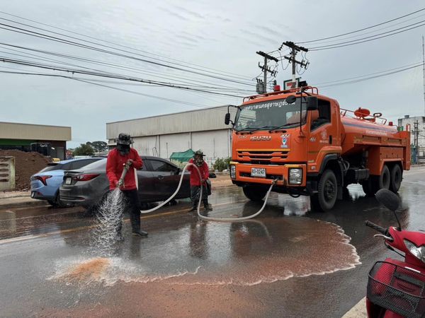 ฉีดล้างถนน แก้ปัญหาฝุ่น