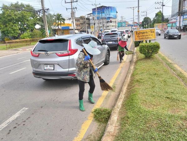 -งานตัดหญ้าเกาะกลางถนนชนเกษม