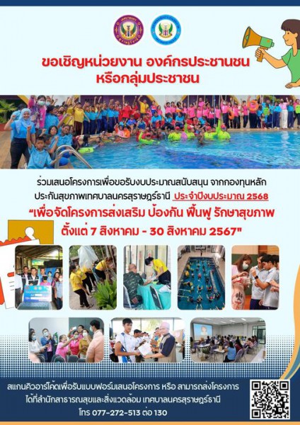 ร่วมเสนอโครงการเพื่อรับงบประมาณสนับสนุน จากกองทุนหลักประกันสุขภาพเทศบาลนครสุราษฎร์ธานี ไตรมาส 1 ประจำปีงบประมาณ พ.ศ. 2568 เพื่อจัดโครงการส่งเสริม ป้องกัน ฟื้นฟู รักษาสุขภาพ