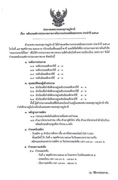 ท่านสามารถดูรายละเอียดหลักเกณฑ์การประกวด และปริ้นใบสมัครได้ในโพสต์ สอบถามรายละเอียดเพิ่มเติมได้ที่ สำนักการศึกษา เบอร์โทร 0-7727-2987