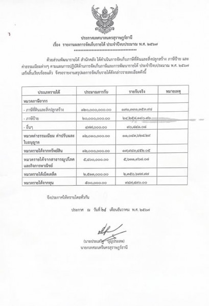 - เรื่อง รายงานผลการจัดเก็บรายได้ ประจำปีงบประมาณ พ.ศ. 2567