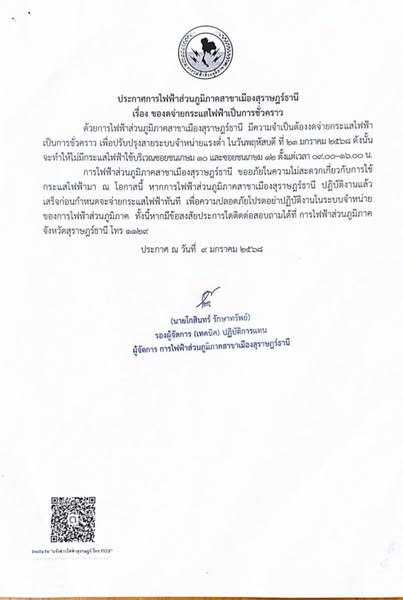 • ประกาศการไฟฟ้าส่วนภูมิภาคสาขาเมืองสุราษฎร์ธานี