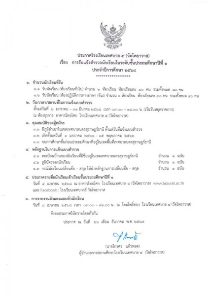 ประชาสัมพันธ์ ประกาศโรงเรียนเทศบาล ๔ (วัดโพธาวาส)
