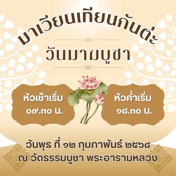 ขอเชิญชวนร่วมกิจกรรมทำบุญ ฟังธรรม และเวียนเทียน เนื่องในวันมาฆบูชา วันพุธที่ 12 กุมภาพันธ์ 2568 ณ วัดธรรมบูชา ตำบลตลาด อำเภอเมืองสุราษฎร์ธานี