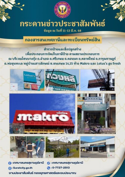 กระดานข่าวประชาสัมพันธ์ เราทำงานทุกวันเพื่อพี่น้องประชาชน 👉🏻 กองสารสนเทศภาษีและทะเบียนทรัพย์สิน
