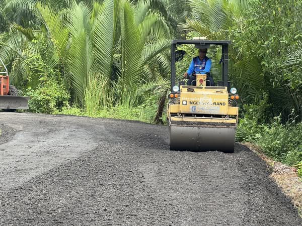 -ลงเศษวัสดุเสริมไหล่ทาง ช่วงโค้ง ลงหินคลุก บดอัดถนนคลองฉนากซอย2แยกขวา 1