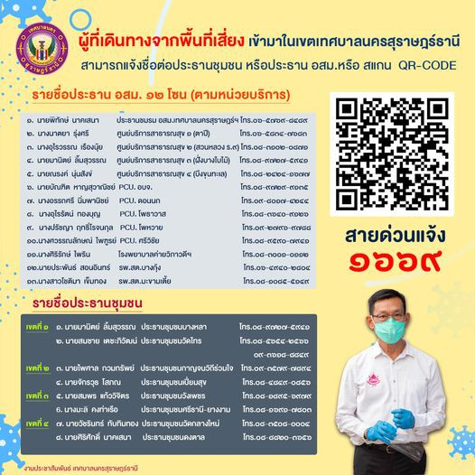 ????????????ขอให้ผู้ที่เดินทางมาจากพื้นที่เสี่ยงเข้ามาในเขตเทศบาลนครสุราษฎร์ธานี ???????? รายงานตัวทุกท่าน โดยการแจ้งชื่อต่อประธานชุมชน ประธาน อสม. หรือ สแกน QR-CODE (ด้านล่าง) เพื่อป้องกันการแพร่ระบาดภายในพื้นที่