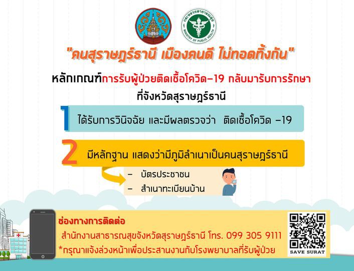????????????หลักเกณฑ์การรับผู้ป่วยติดเชื้อโควิด-19 กลับมารับการรักษาที่จังหวัดสุราษฎร์ธานี