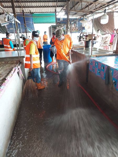 เทศบาลนครสุราษฎร์ธานี ลงพื้นที่ล้างทำความสะอาดและฉีดพ่นยาฆ่าเชื้อตลาดภูธร๘