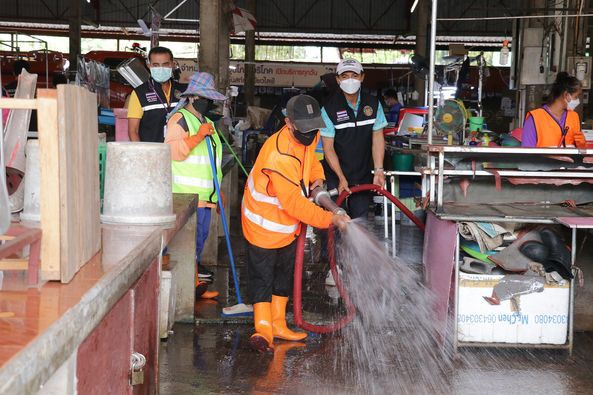 เมื่อวันที่ ๑๐ กันยายน ๒๕๖๔ นายประเสริฐ บุญประสพ นายกเทศมนตรีนครสุราษฎร์ธานี มอบหมายให้เจ้าหน้าที่สำนักสาธารณสุขและสิ่งแวดล้อม เทศบาลนครสุราษฎร์ธานี ลงพื้นที่ล้างทำความสะอาดและฉีดพ่นยาฆ่าเชื้อในตลาดหน้าศูนย์พัฒนา เพื่อลดการแพร่ระบาดของโรคโควิด-19 ตามแผนการล้างตลาดในเขตเทศบาลฯ ทั้งนี้มีสมาชิกสภาเทศบาลร่วมลงพื้นที่พร้อมอำนวยความสะดวกแก่เจ้าหน้าที่ผู้ปฏิบัติงาน ณ ตลาดหน้าศูนย์พัฒนา