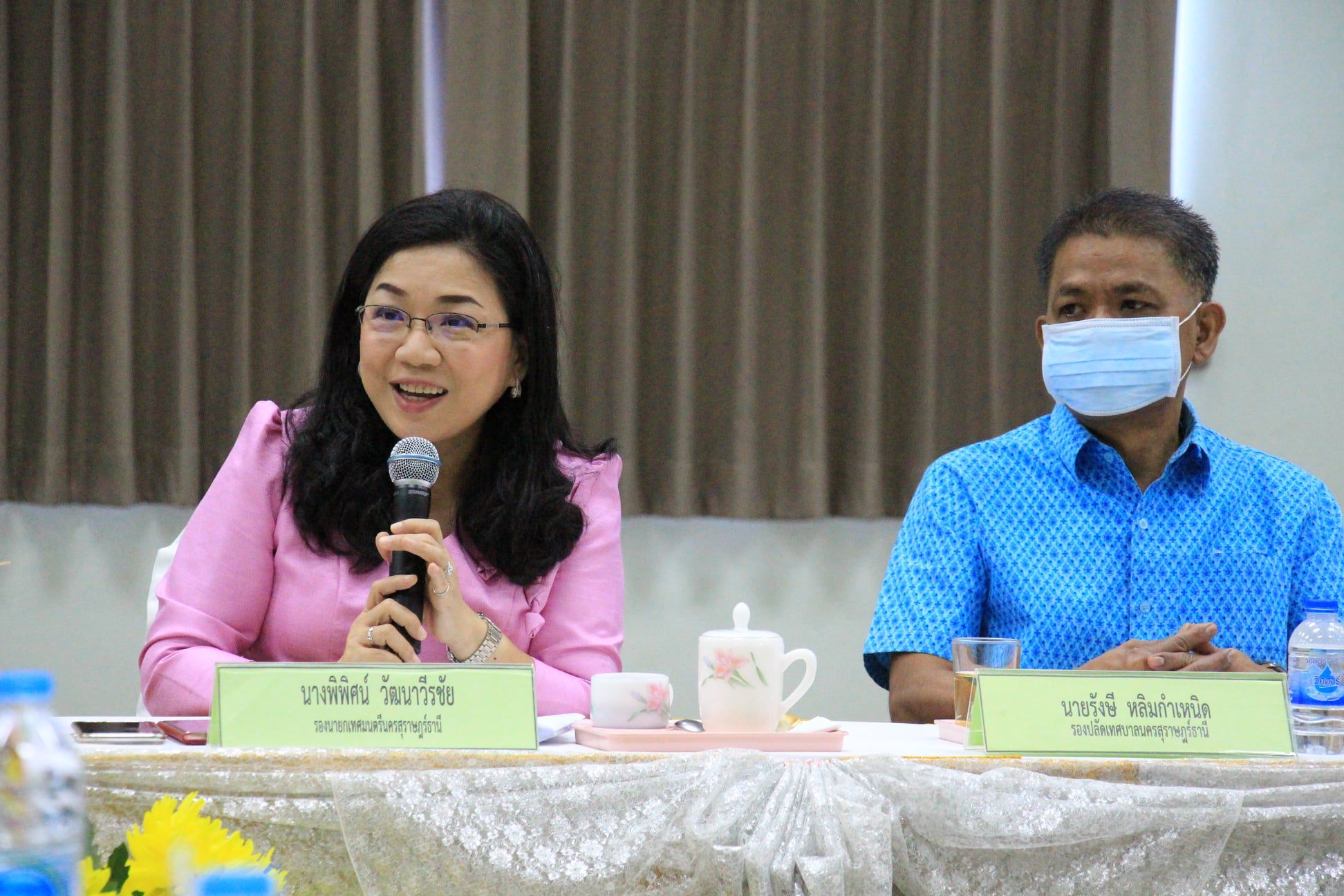 เทศบาลนครสุราษฎร์ธานี โดยนางพิพิศน์ วัฒนาวีรชัย รองนายกเทศมนตรีนครสุราษฎร์ธานี ให้การต้อนรับนายเดโช ขวัญพุฒ ผู้ทรงคุณวุมิ สพป.สุราษฎร์ธานี เขต ๓ ประธานกรรมการ