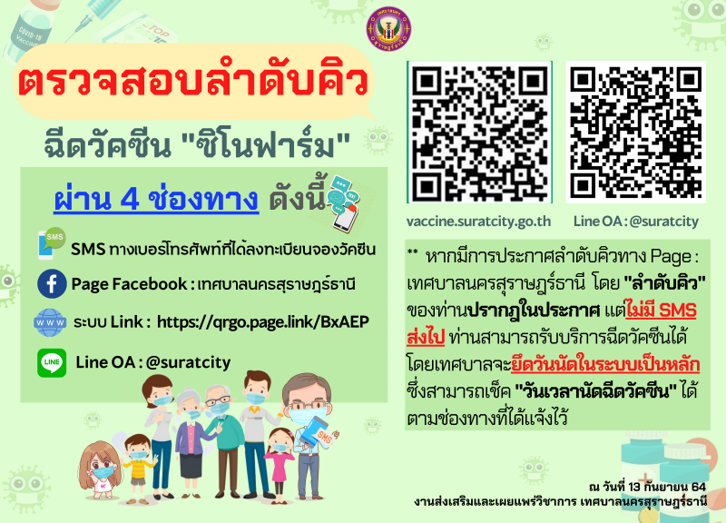 ตรวจสอบลำดับคิว การฉีด "ซิโนฟาร์ม"