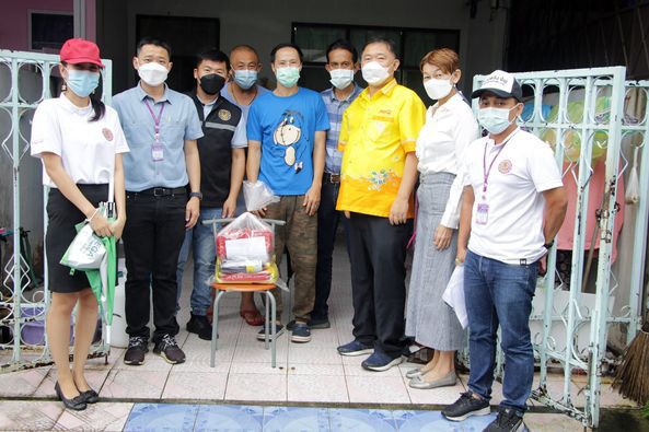 อบถุงยังชีพบรรเทาความเดือดร้อนให้กับผู้กักตัว ๑๔ วัน