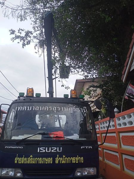เทศบาลนครสุราษฎร์ธานี ได้รับแจ้งจากทางวัดโพธาวาส ขอความอนุเคราะห์ให้ไปช่วยดำเนินการตัดต้นไม้ กิ่งไม้ที่ยื่นออกไปที่ริมถนน