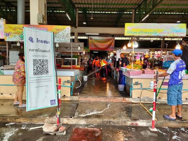 ลงพื้นที่ล้างทำความสะอาดและฉีดพ่นยาฆ่าเชื้อตลาด