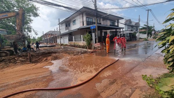 ฉีดล้างทำความสะอาดบริเวณถนนในเขตเทศบาลฯ