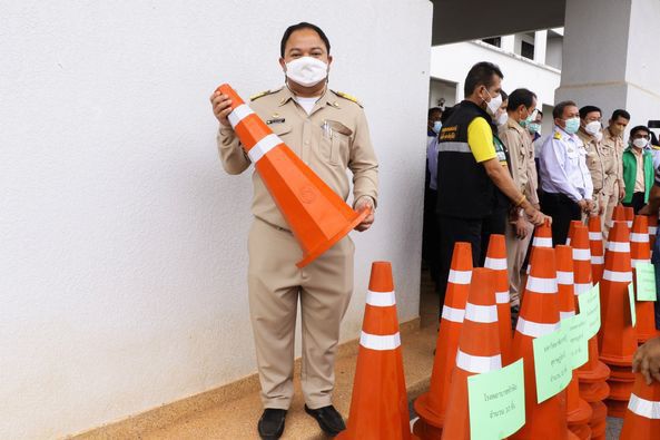 รับมอบกรวยยางจราจรที่ผลิตจากน้ำยางพารา จากการยางแห่งประเทศไทย จังหวัดสุราษฎร์ธานี
